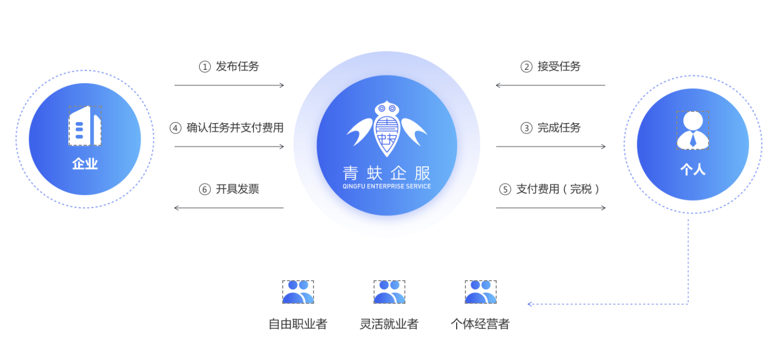 企业在给灵活就业人员进行费用结算时, 企业无法取得进项发票,灵活就业个人缴税及完税困难,风风火火可为灵活就业人员一键批量支付,并依法为个人报税及完税,并为企业真实业务合规开具增值税专用发票。